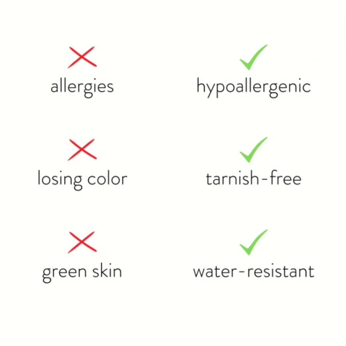 Fabricado en acero inoxidable impermeable, ¡nunca más tendrá que preocuparse por dedos verdes, joyas que se desvanecen o se empañan!