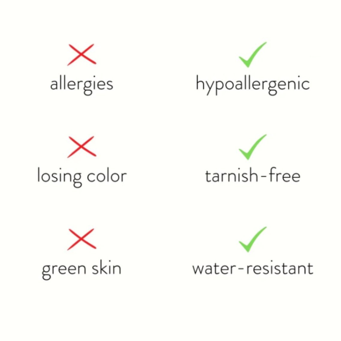 Hecho de acero inoxidable resistente al agua, ¡nunca más tendrá que preocuparse por el desvanecimiento o el empañamiento de las joyas!