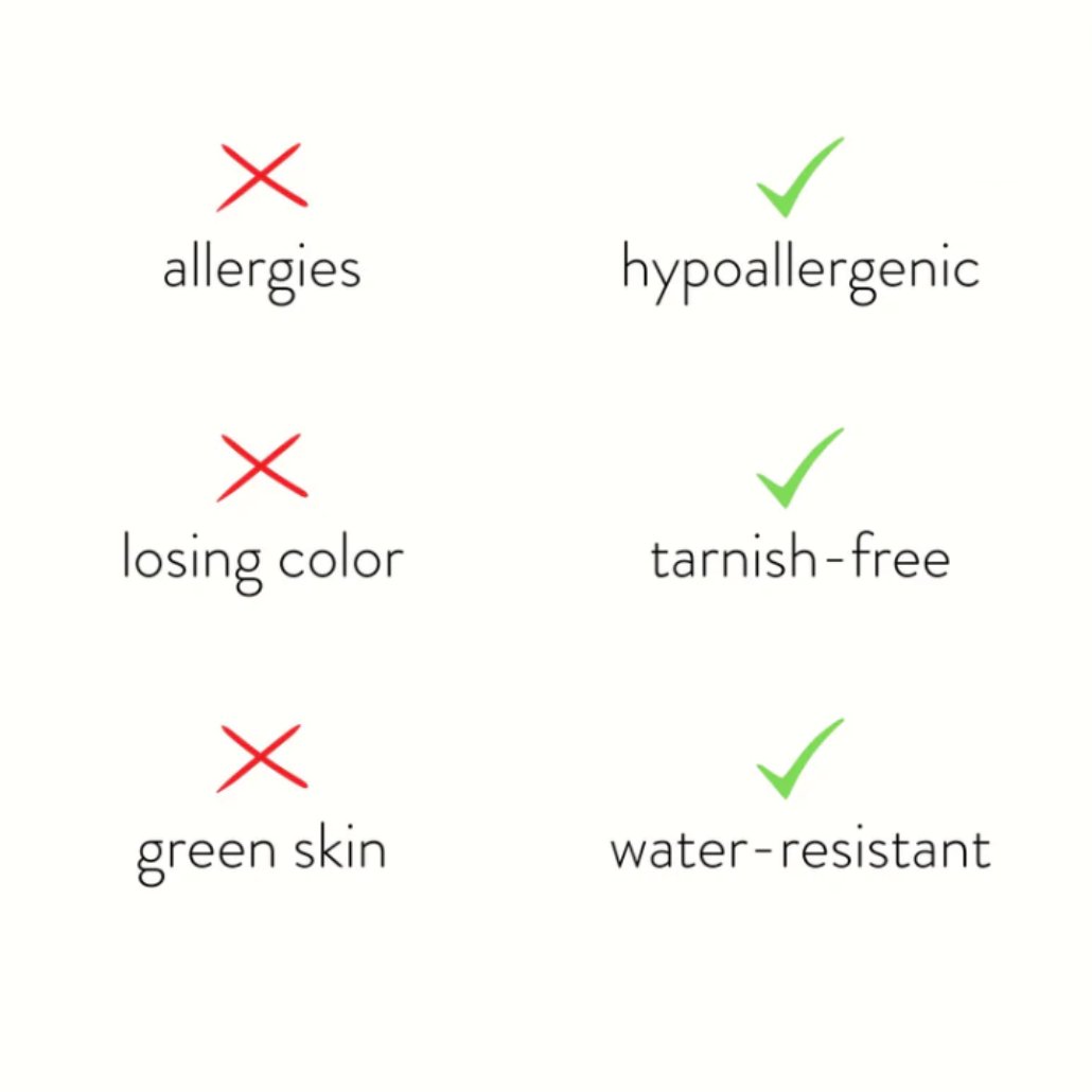 Fabricada en acero inoxidable resistente al agua, nunca más tendrás que preocuparte por joyas que se descoloran o se empañan.